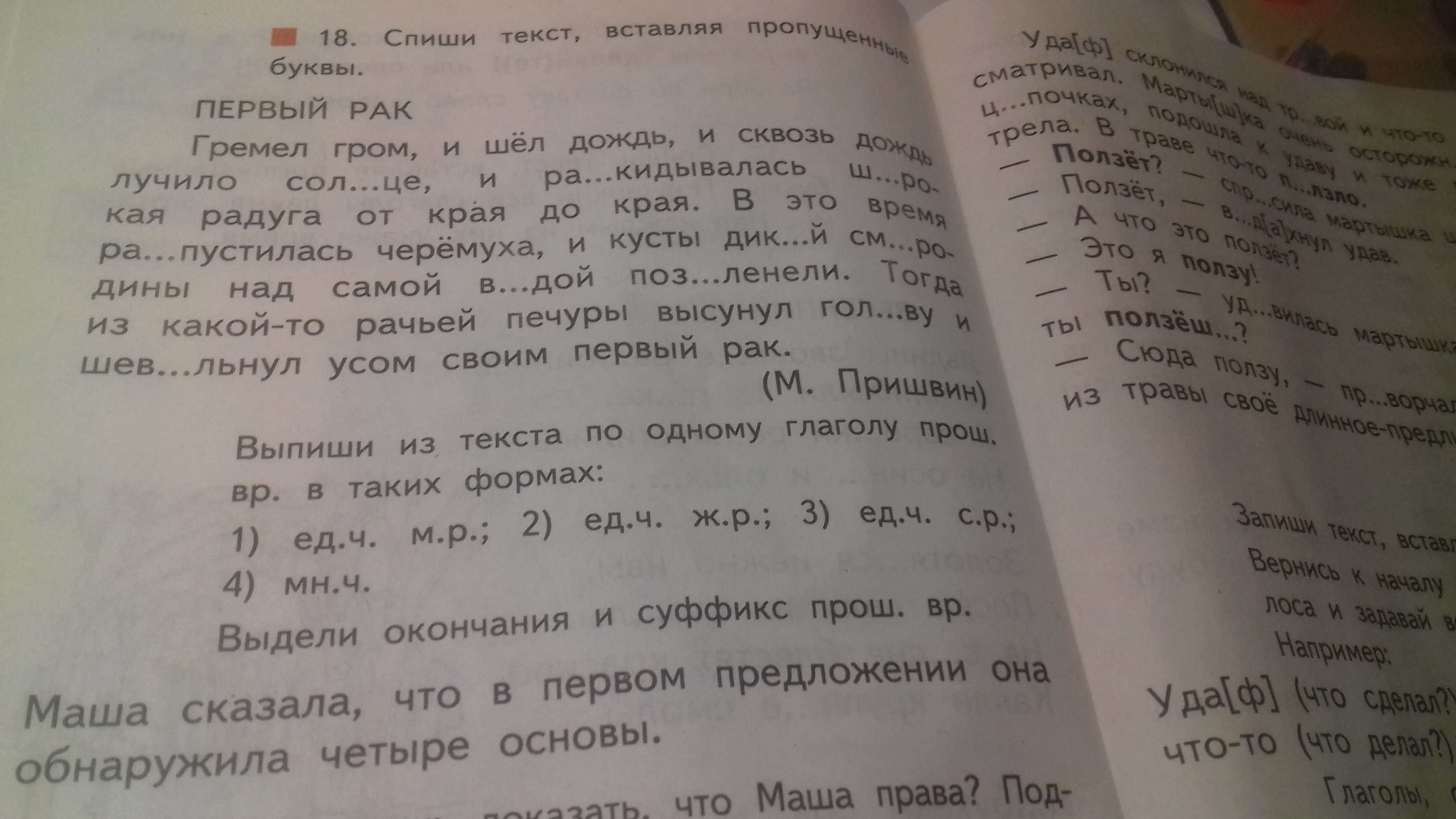 Гремел, шёл, лучило, раскидывалась, распустилась, позеленели, высунул, шевельнул.
