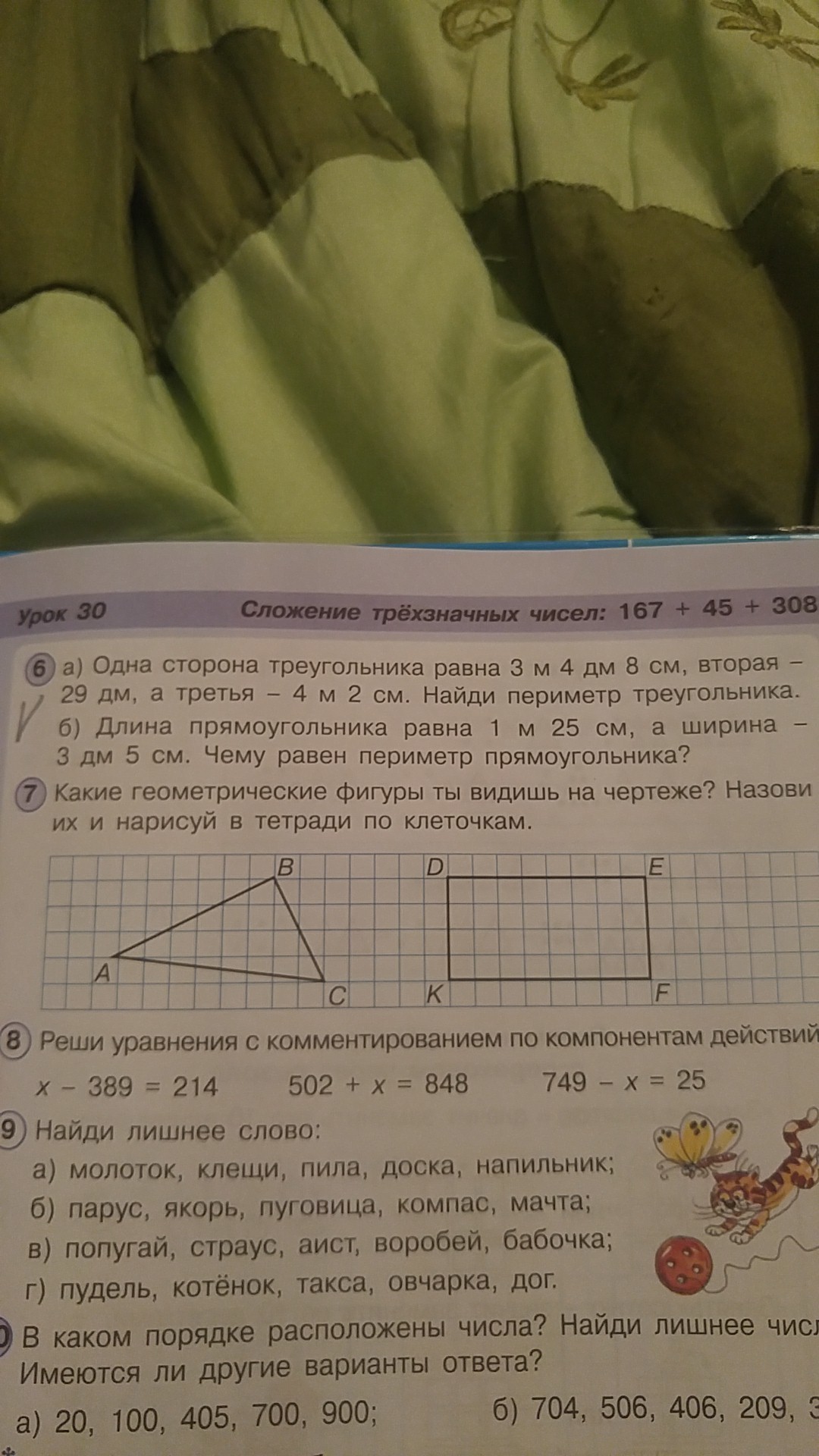 одна сторона треугольника равна 3 метра 4 дециметра 8 сантиметра и 29 дециметра 3 4 метра 2 см Найди периметр треугольника