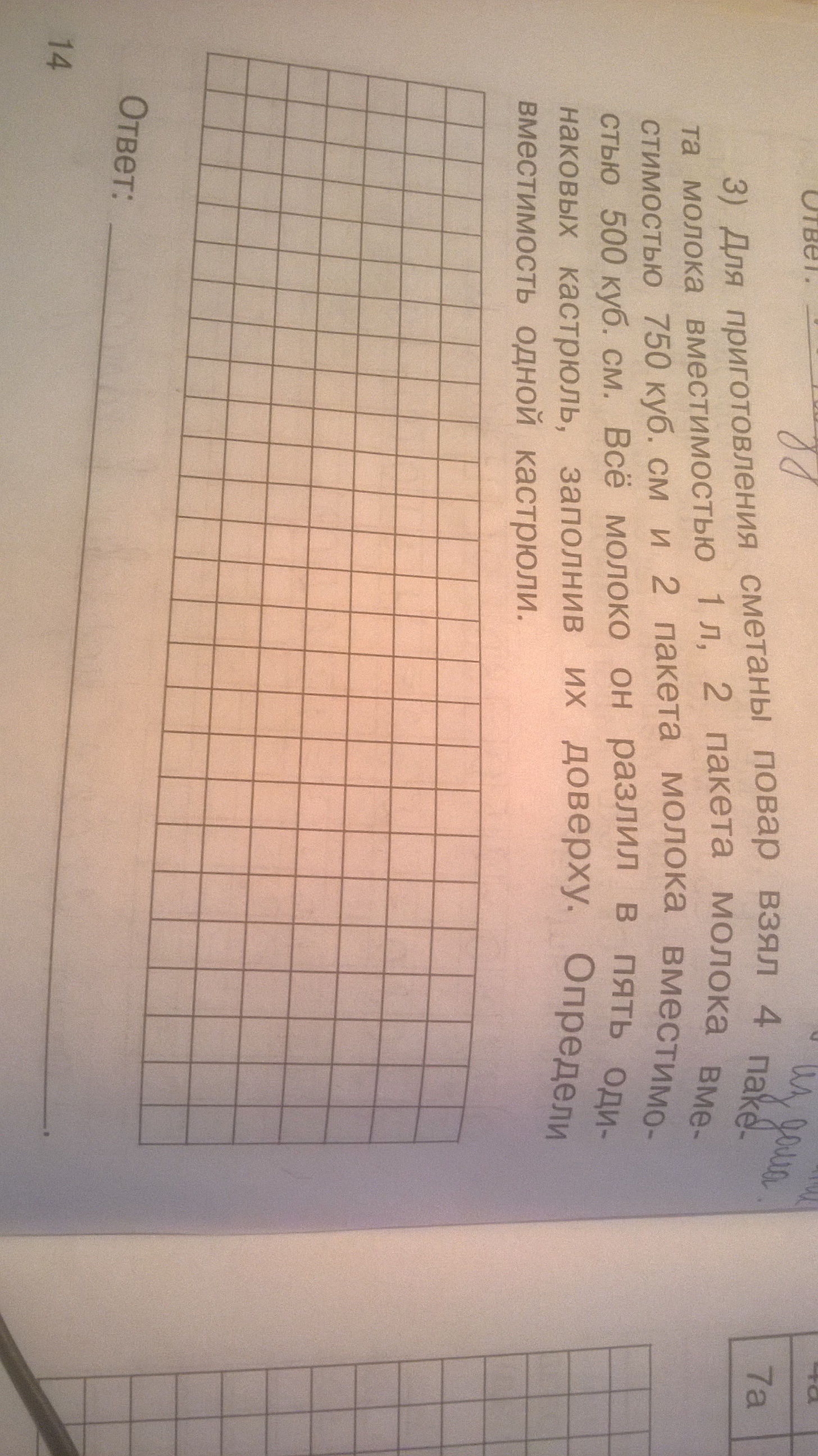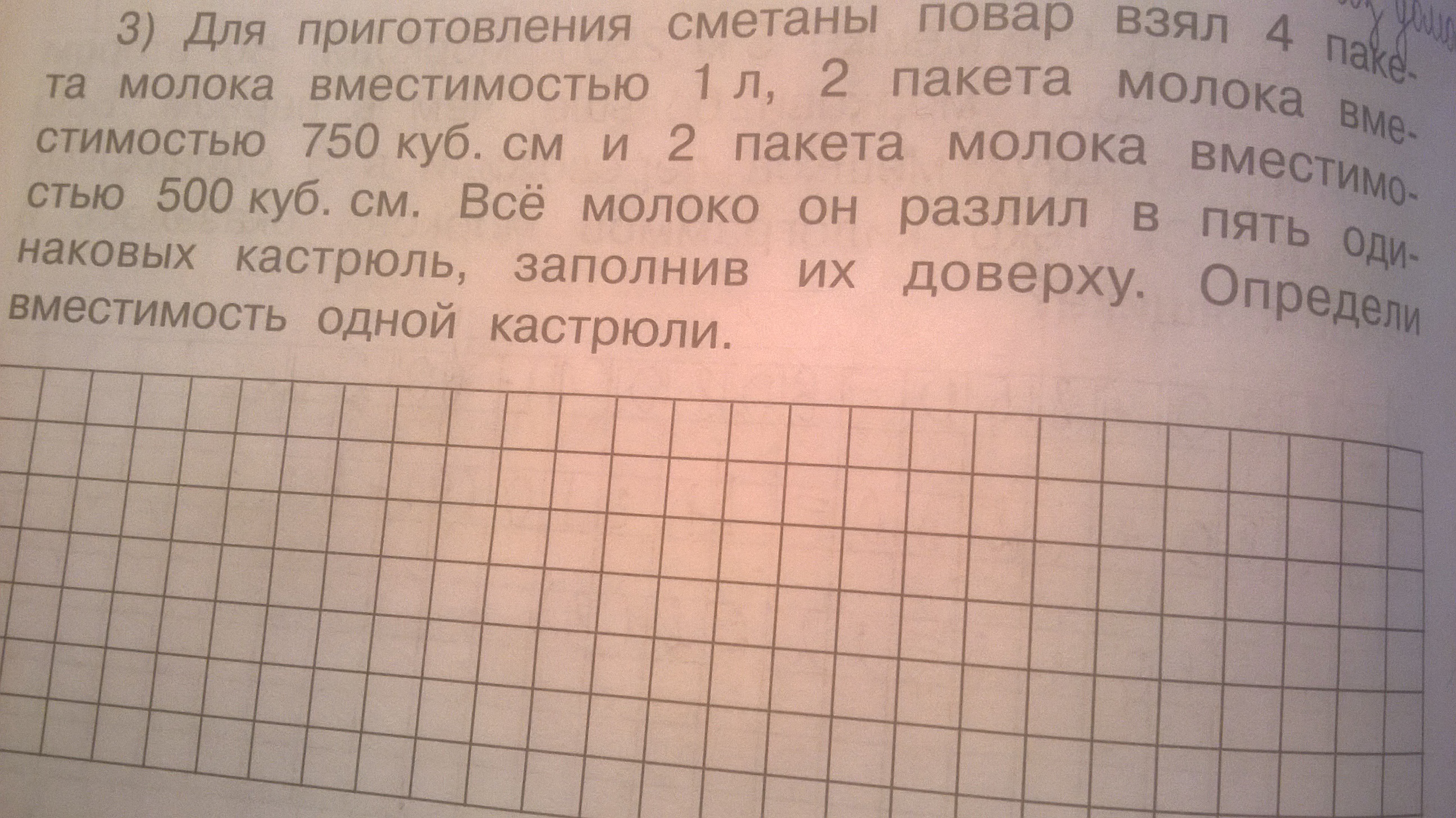 5)6500/5= 1300 мл - вместимость одной кастрюли