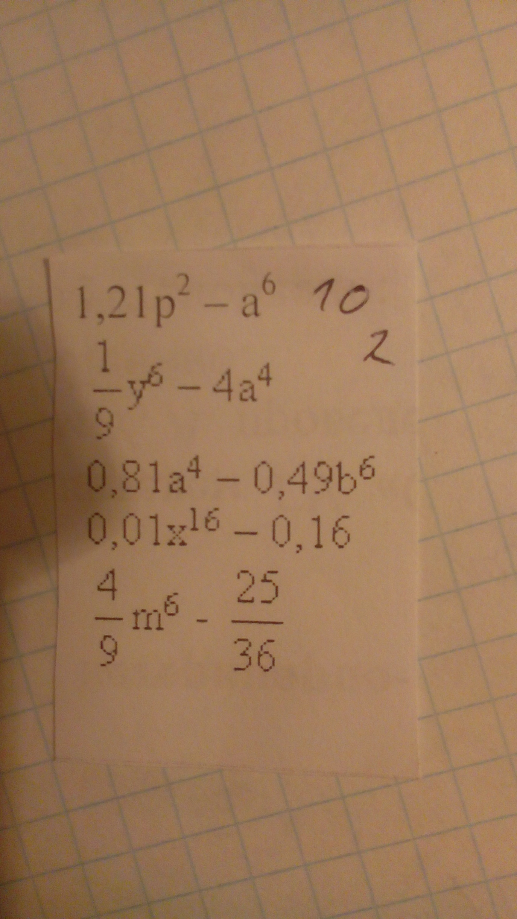 1,21p² - a⁶=(1,1p)² - (a³)² = (1,1p - a³)(1,1p + a³)
