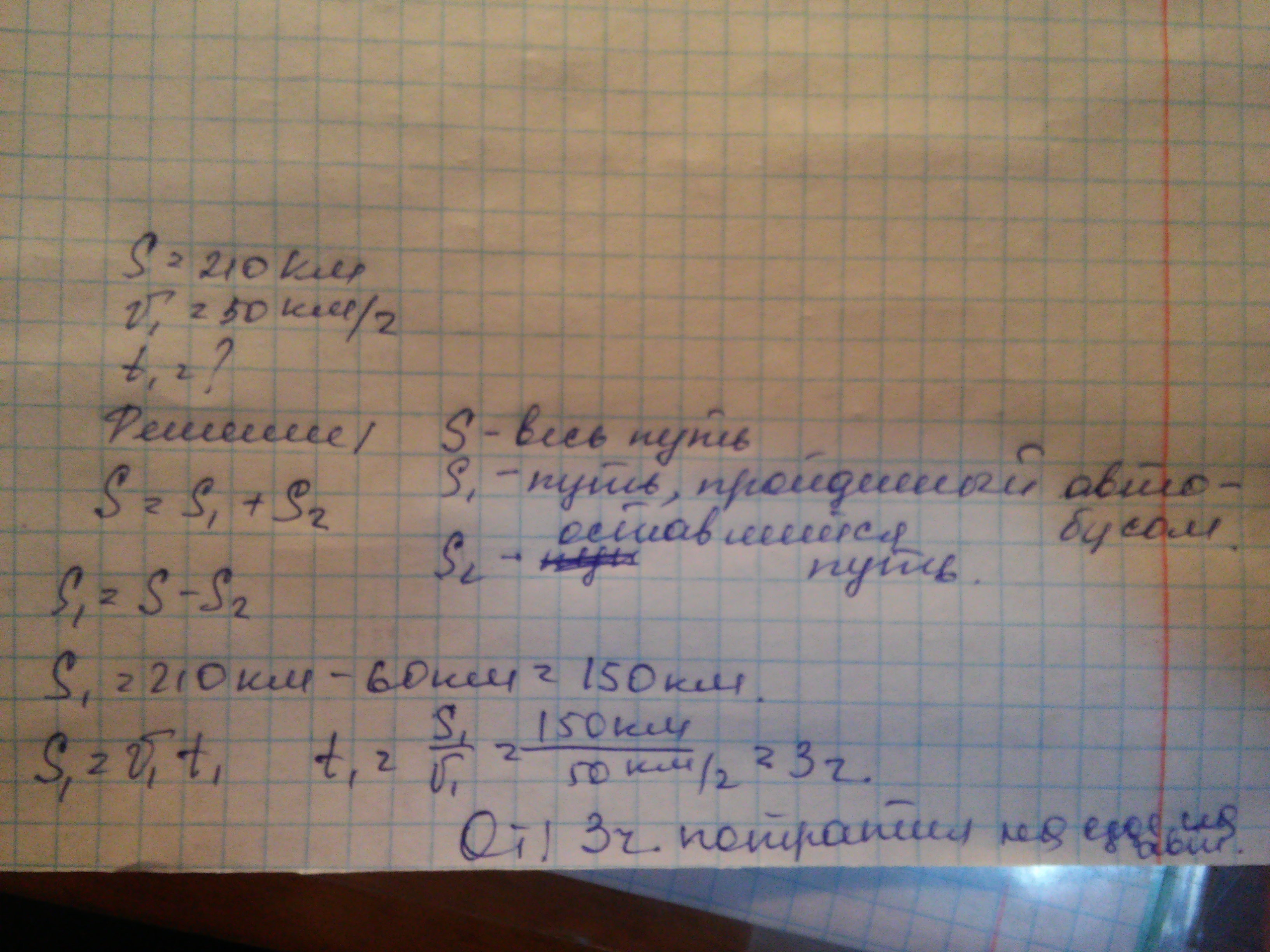 расстояние между городом и поселком 210 км студент выехал из одного города в поселок сначала на автобусе который шел со скоростью 50 километров час затем на попутной машине проехал а оставшиеся 60 км сколько времени он ехал на автобусе составить уравнение