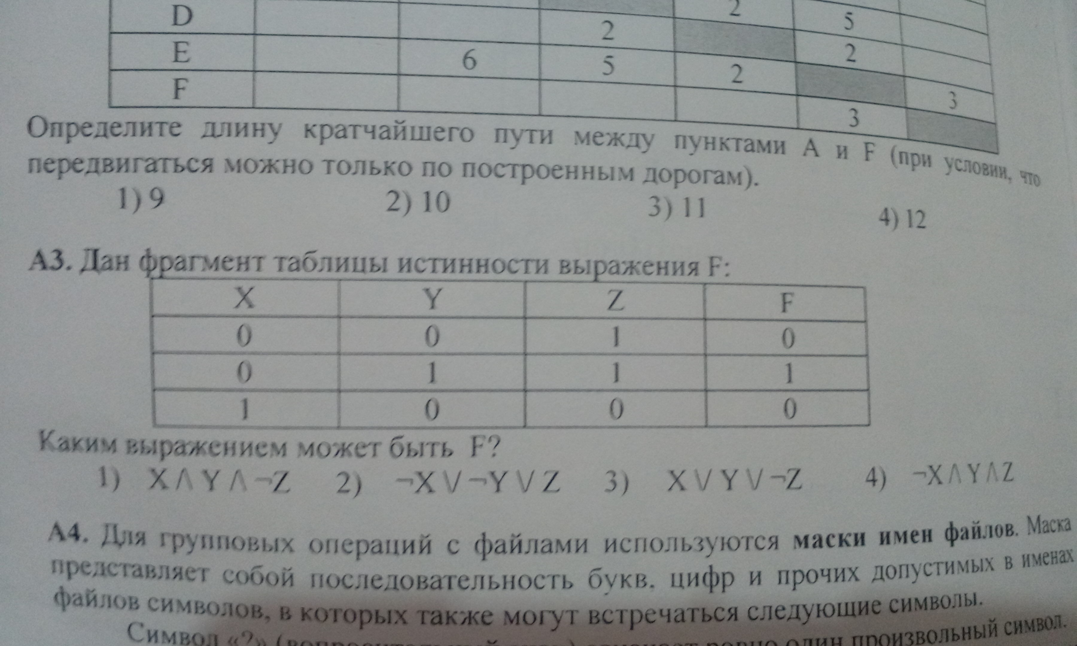 ответ 4 , так как дизъюнкция , то ищем f =1