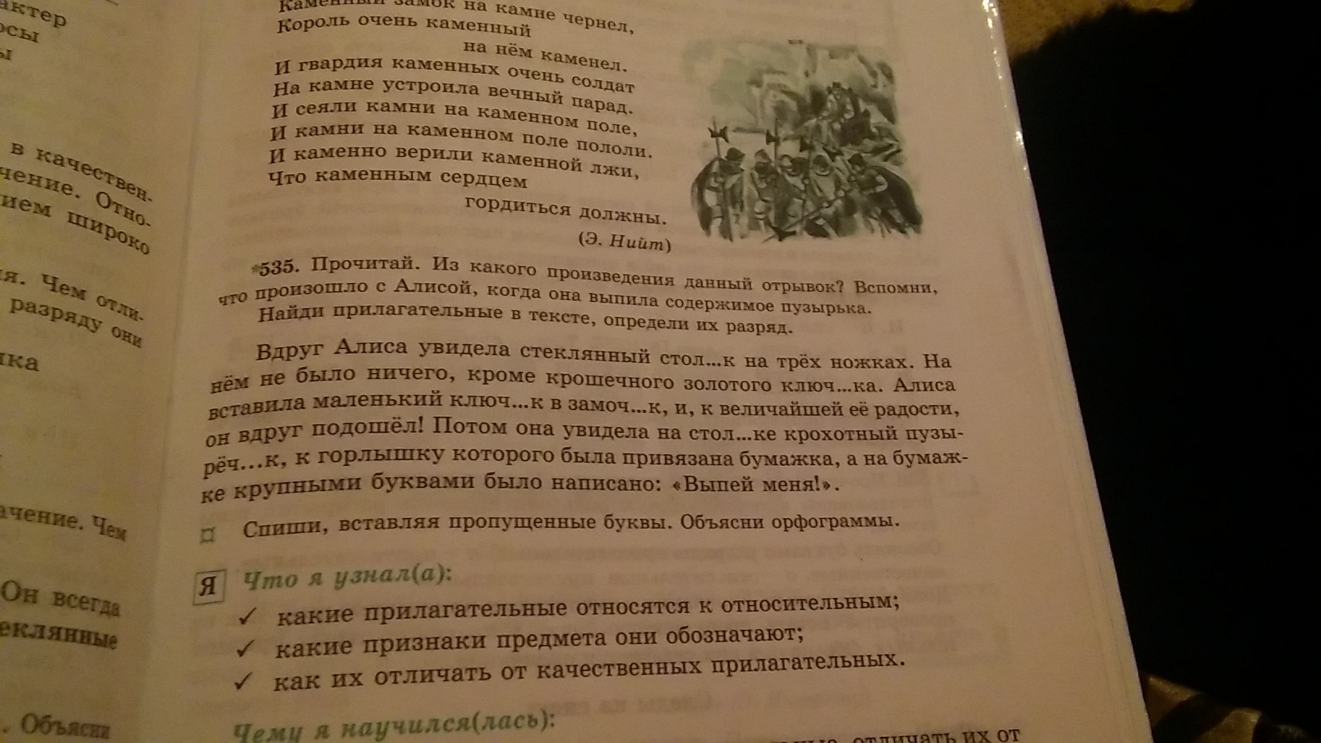 Прочитай из какого произведения данный отрывок Вспомни что произошло с Алисой когда она выпила содержимое пузырька Найди прилагательные в тексте Определи их разряд друг Алиса увидела стеклянный столик на трех ножках на нём не было ничего кроме крошечного золотого ключика Алиса Выключи радости она вдруг она увидела на столике у которого была привязана бумажка на бумажке написано шестой класс упражнение 153