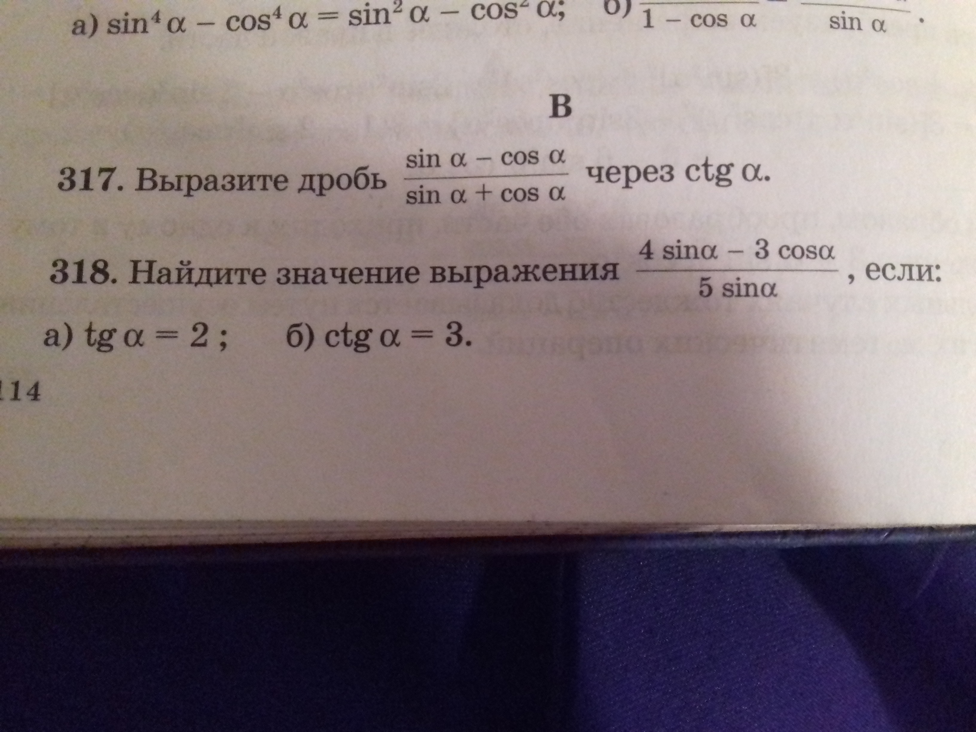 318) = 4sina/5sina -3cosa/5sina= 4/5-3/5ctga= 4/5 - 3/5* 1/tga=