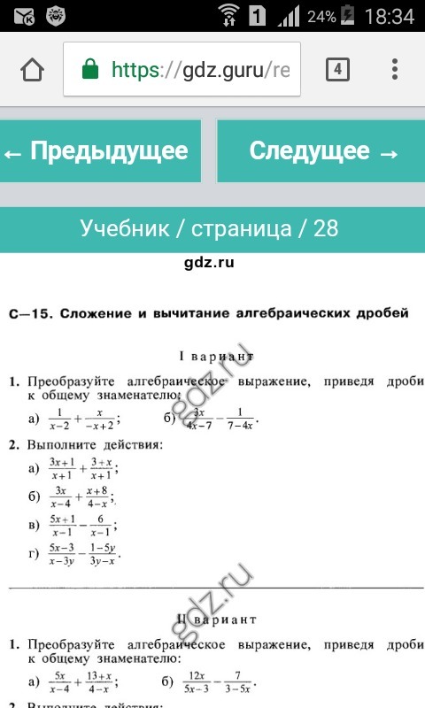 1. а) 1/(x-2)+x/(-x+2) = ((-x+2)+x(x-2))/(2-x)(x-2) = -x+2+(x^2)-2x/(-((x^2)-4x+4))=(x^2)-3x+2/(-(x-2)^2)