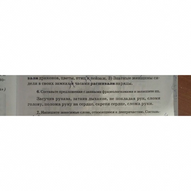Костя работает засучив рукава. Я смотрю на свою старшую сестру затаив дыхание.Они работали не покладая рук. Я думал над этой задачей сломя голову. Я говорил положа руку на сердце. Мы сидели сложа руки