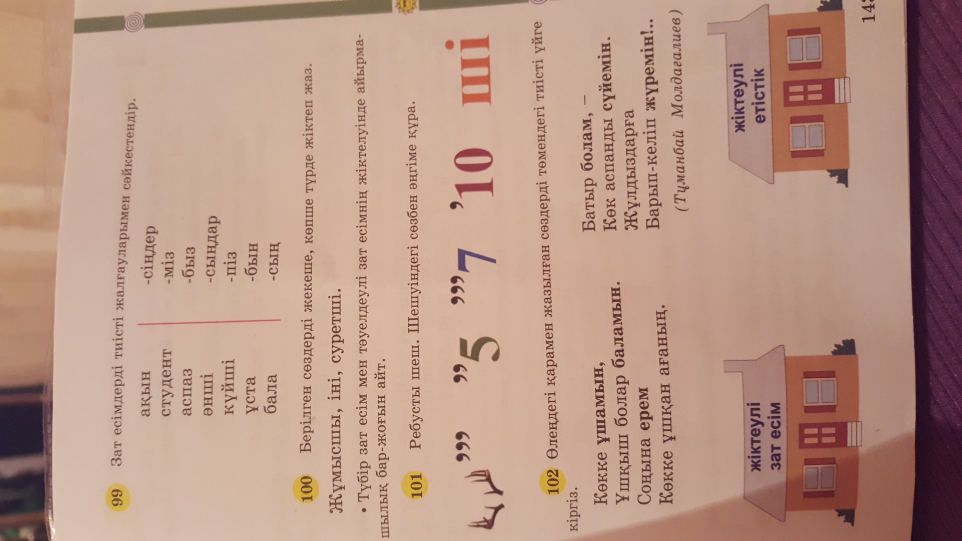 Мүсін-мү: бес-с: жеті- і: он-н: ші. Шешуі мүсінші. Ол шебер мүсінші.