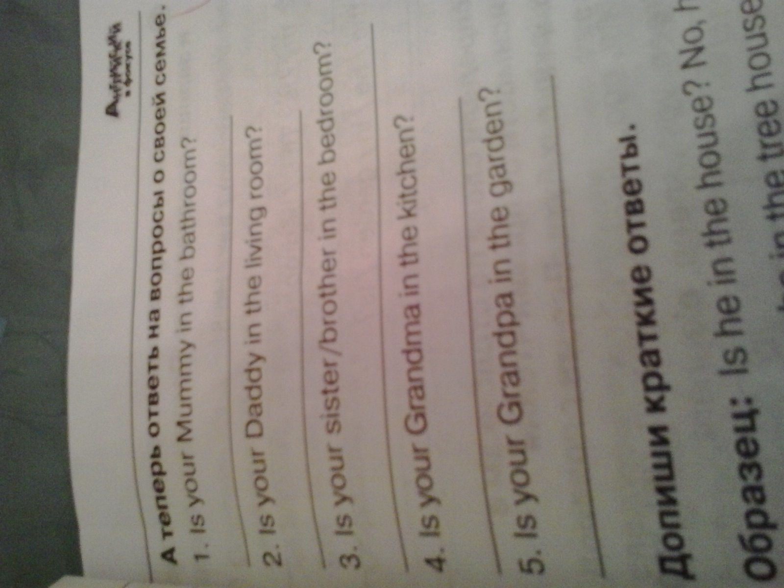 4)No,My grandma is sleeping in bedroom