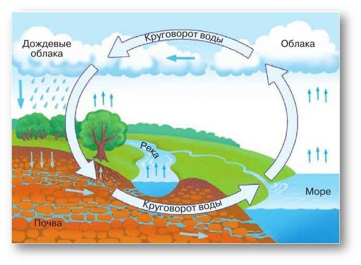 вот посмотри. Вода испаряется а затем выпадают осадки. И так по кругу.