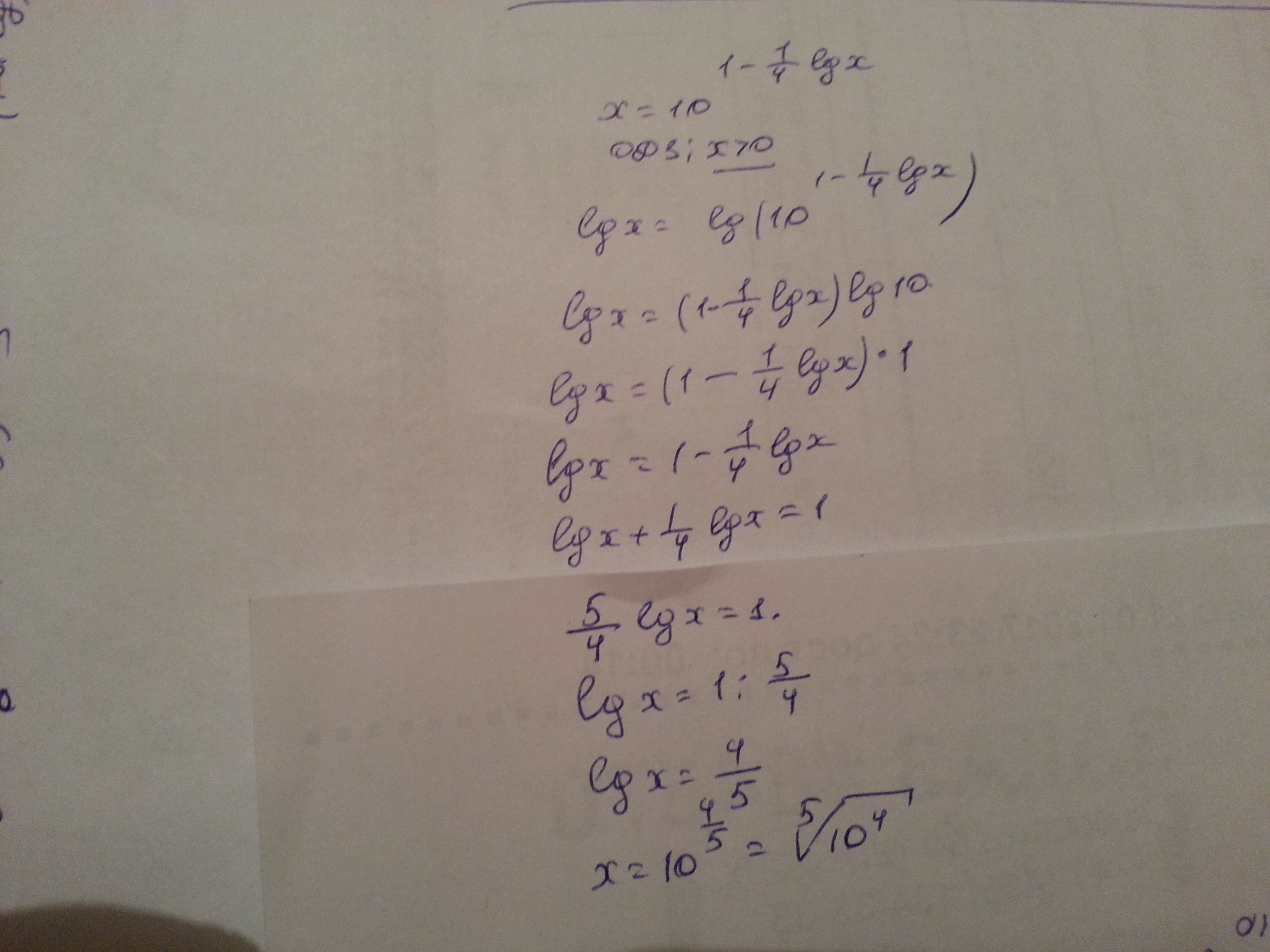 x = 10^(1 - 1/4*lgx)