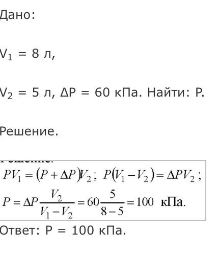При сжатии газа его объем уменьшился с 8 л до 5л, а давление повысилось на 60кПа. Найдите первоначальное давление. Процесс изотермический.