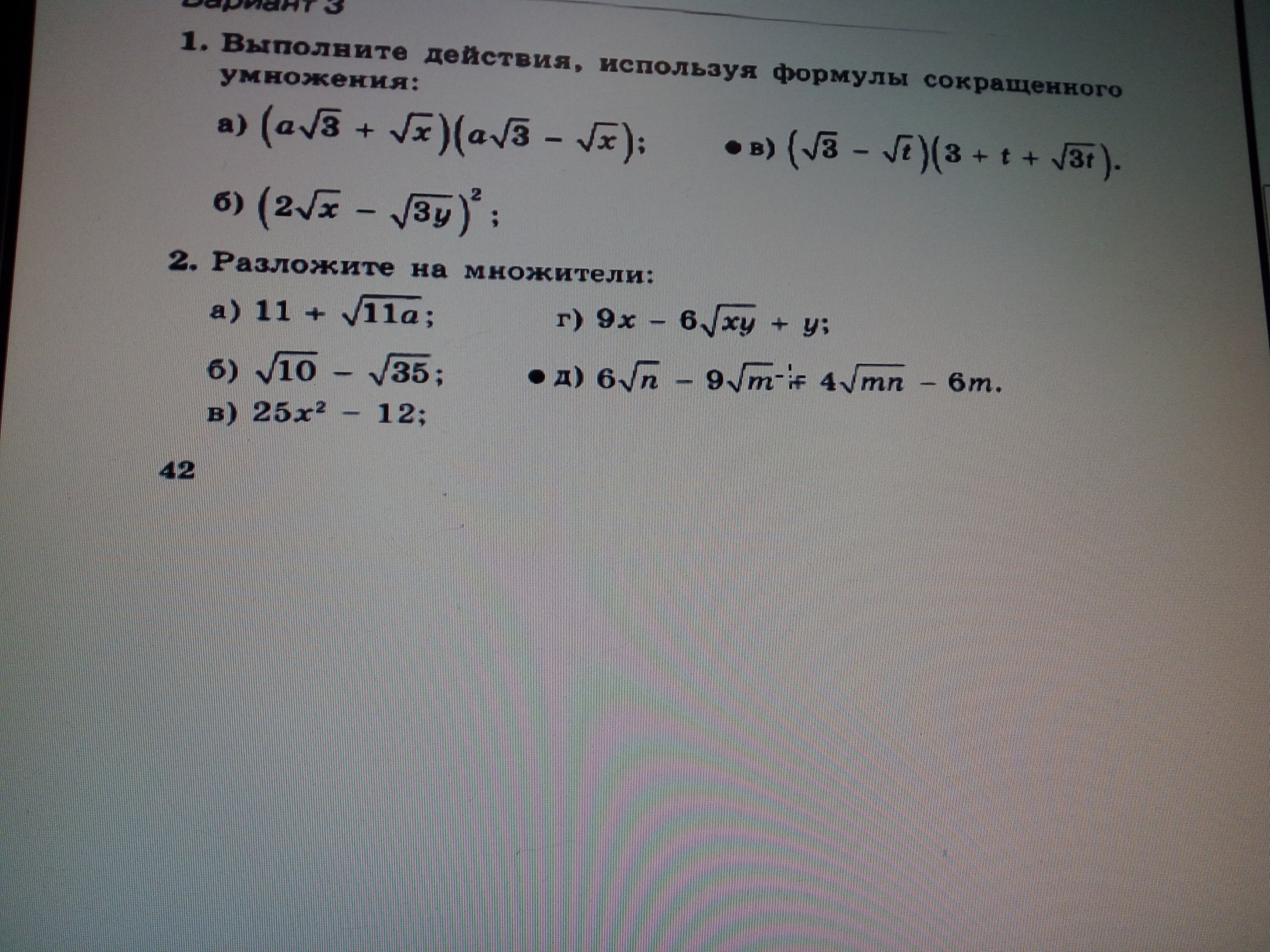 д)6√n-9√m+4√mn-6m=2√n(3+2√m)-3√m(3+2√m)=(3+2√m)2√n-3√m)
