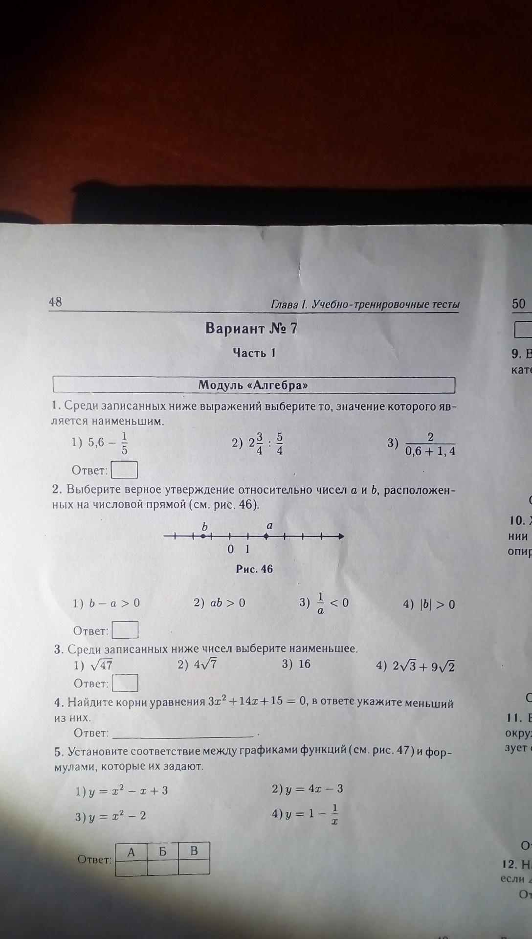 1).5,6-1/5=5,4; 2)2(3/4):5/4=11/4:5/4=(11/4)*(4/5)=11/5=2,2; 3).2/(0,6+1,4)=2/2=1. наименьшее значение из представленных выражений имеет 3. Ответ : выражение под номером 3.