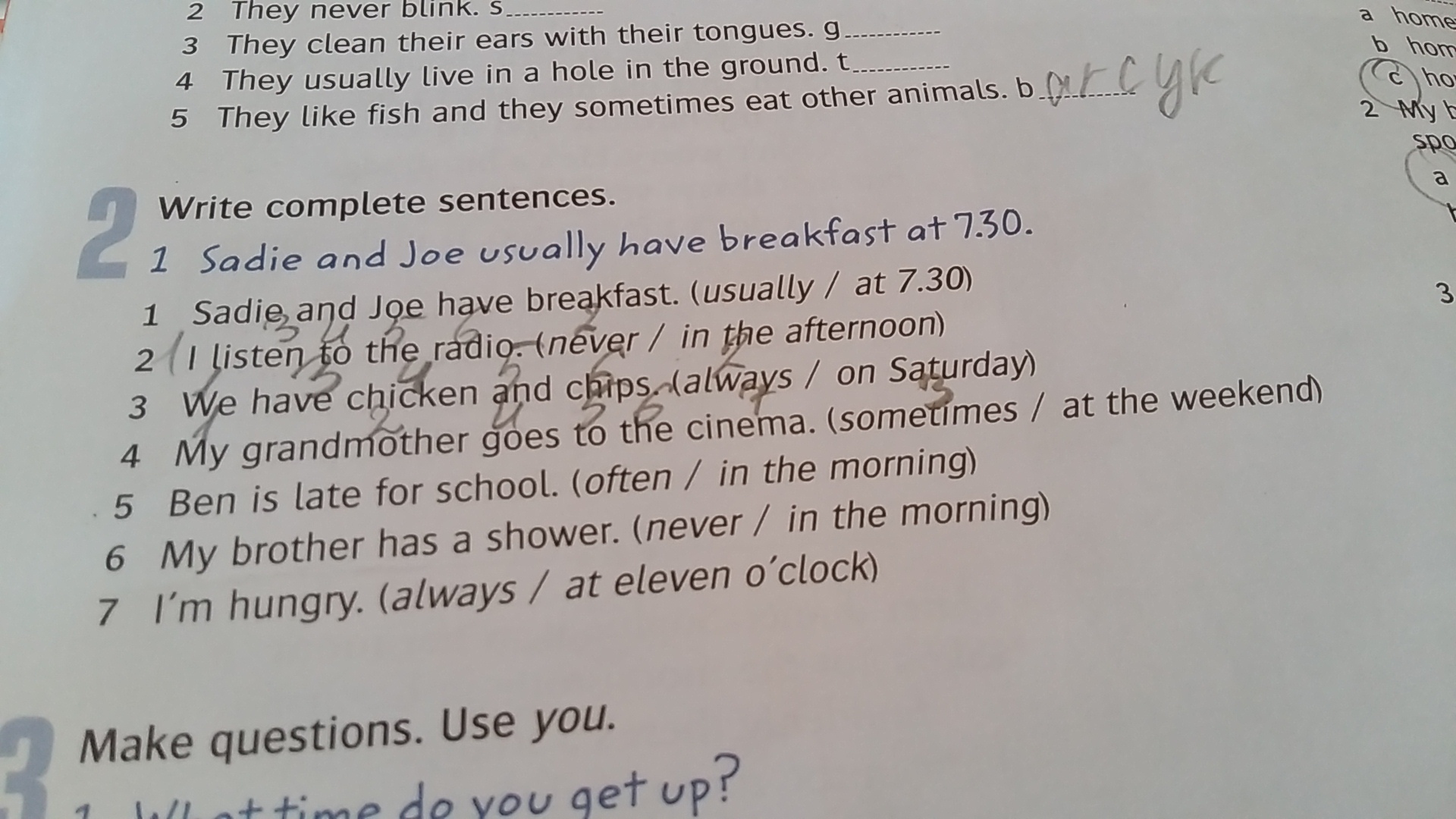 и везде ставишь первое слово в скобках после подлежащего (i, she, he и т. д). , второе слово в конце предложения