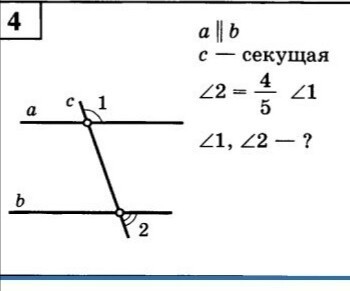 возьмём за х угол1, тогда угол 2 равен 4/5 х. т.к. угол 1 и угол 2 односторонними углами значит их сумма равна 180°. составим уравнение