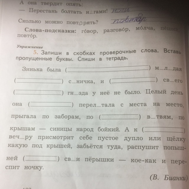 Молодая (Молод), Синичка, Своего (свой) Гнезда (гнёздышко), Перелетала (Лёт, полёт) Ветвям (ветвь) Вечеру (вечер) свои (свой)