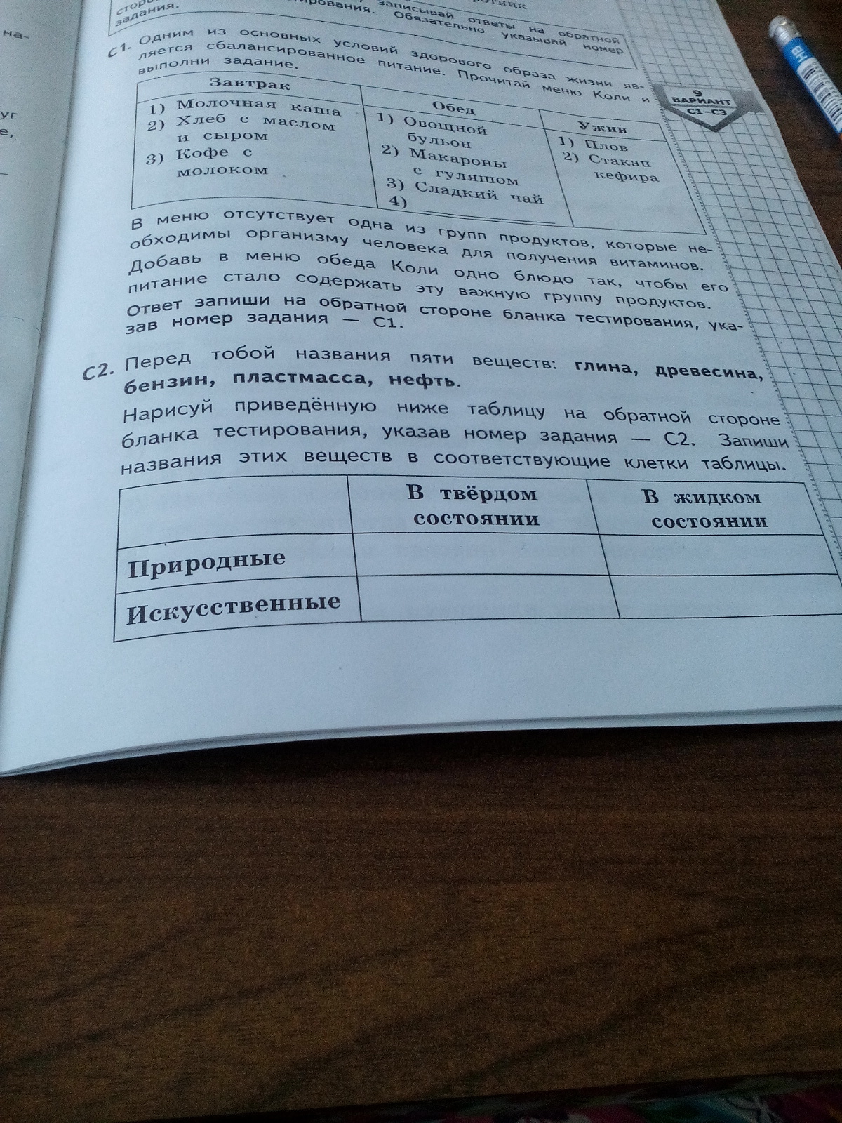 С2. Природные: 1.Древесина, глина (в твердом состоянии).