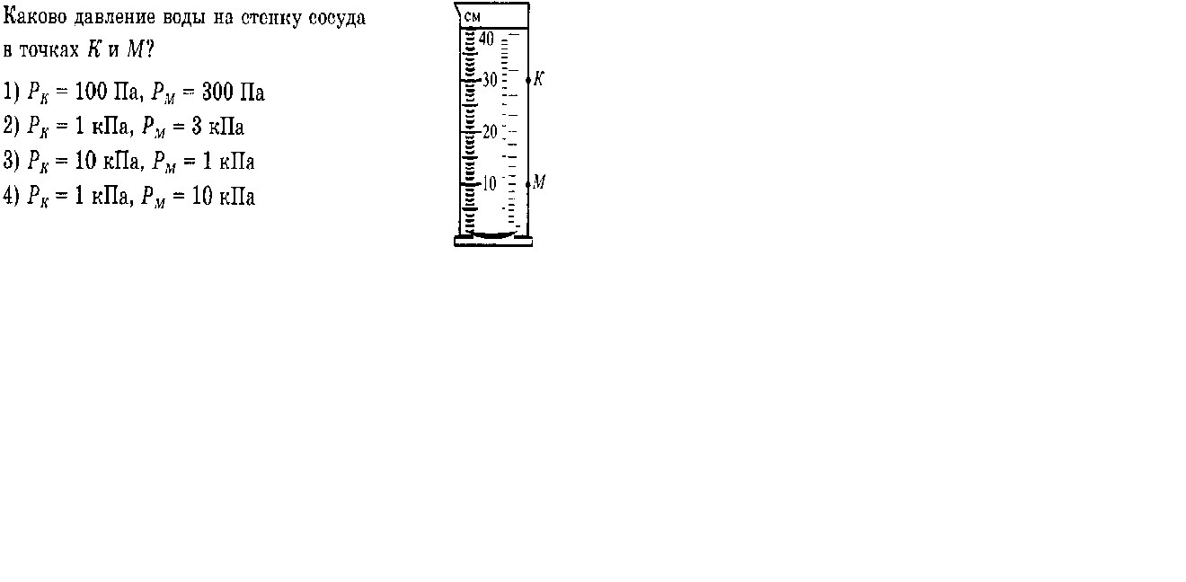 Давление жидкости Р=qgH q=плотность жидкости=1000 кг/м³
