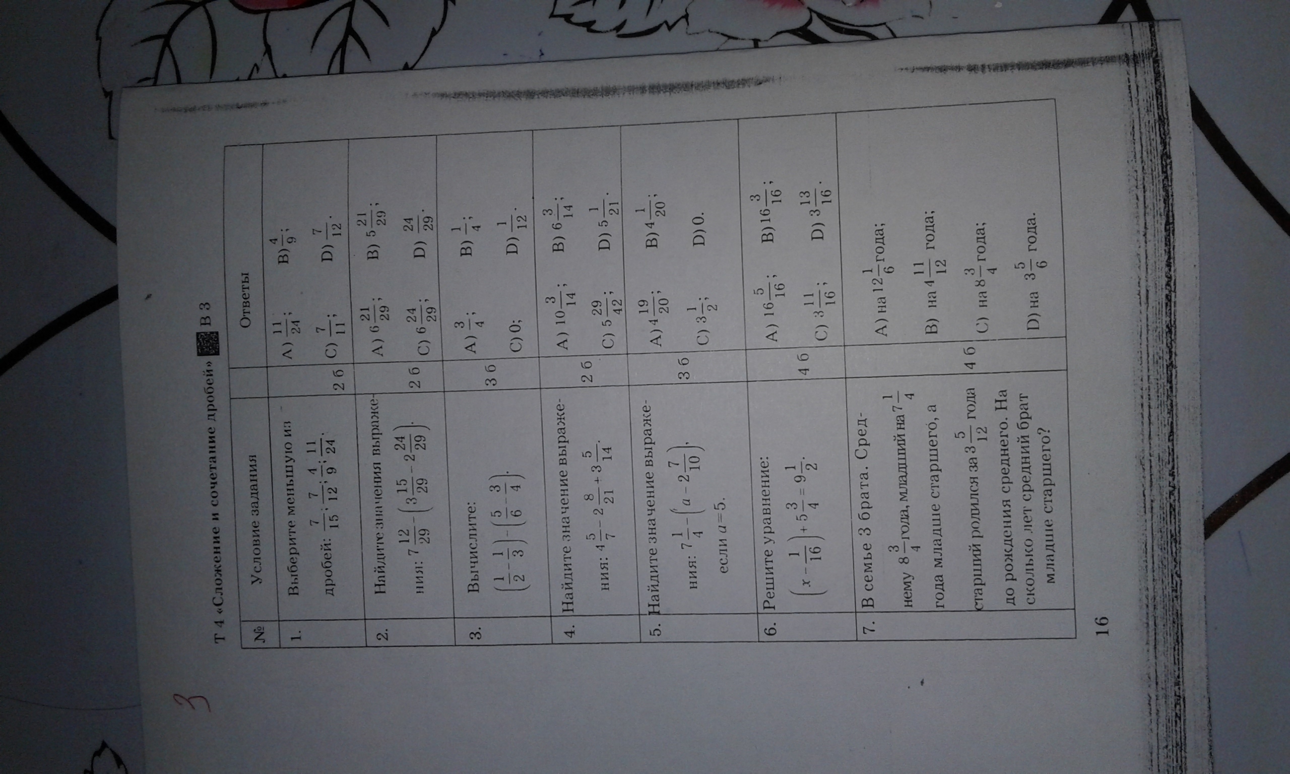 4 задание: здесь общий знаменатель 42,первую дробь домножаешь на 6,вторую-2,третью-3