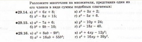 г) х²+16ху+39у² = х²+3ху+13ху+39у² = х(х+3у)+13у(х+3у) = (х+3у)(х+13у)