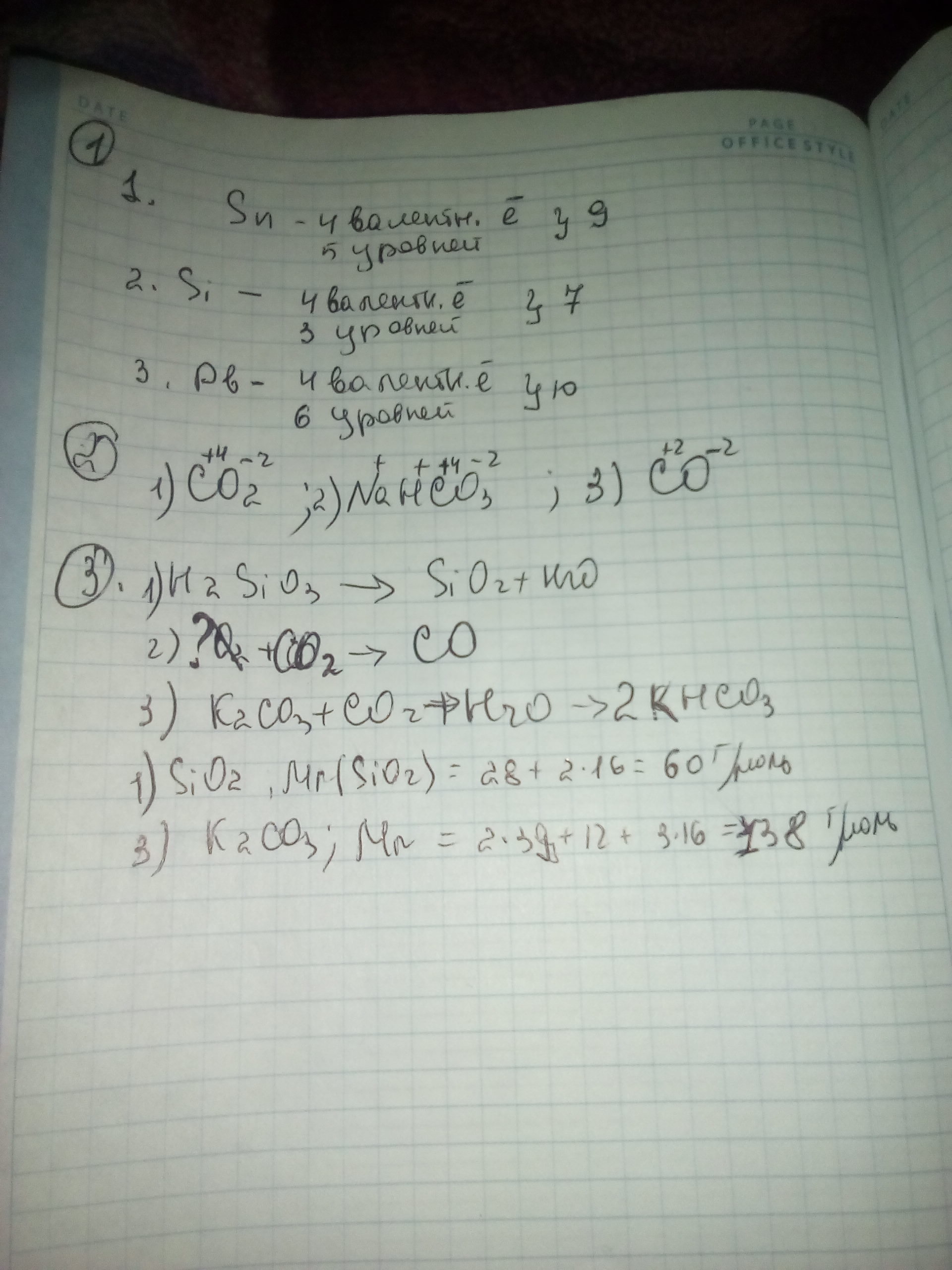 1. H2SiO3 ---> ? + H2O. 2. ? + CO2 ---> CO. 3. ? + CO2 ---> KHCO3.