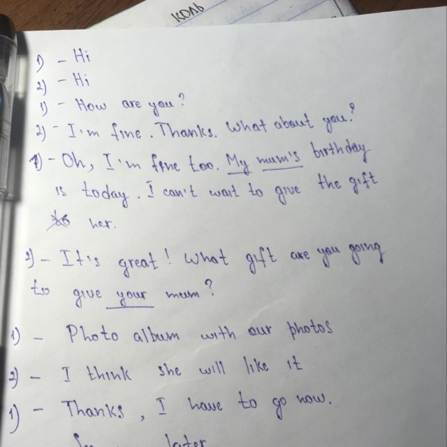 Надо написать Диолог на английском языке с притяжательными местоимениями Немного Даю 35 балов помоги пожалуйста