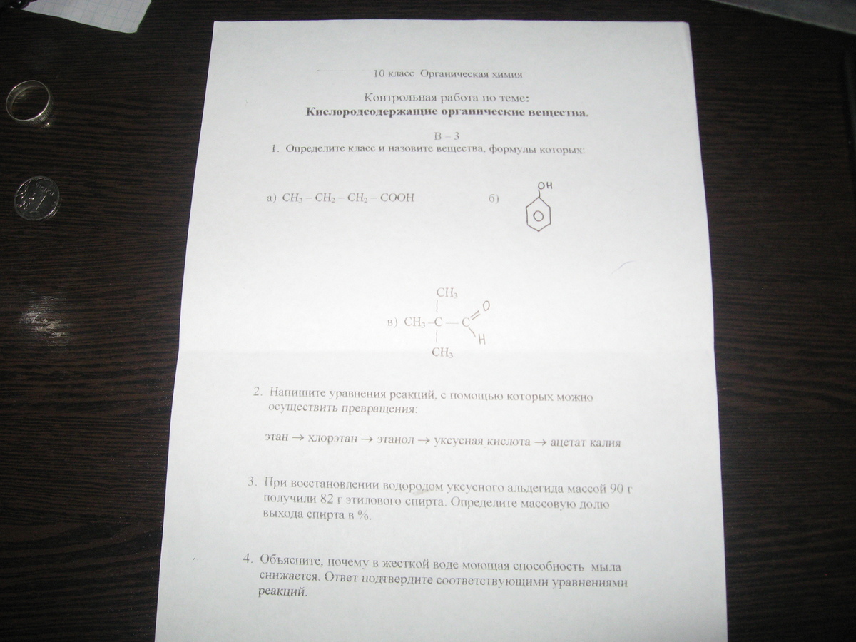 1)Бутановая кис-та; класс-карбоновая кислота CH3-CH2-CH2-COOH имеет тривиальное название "маслянная"