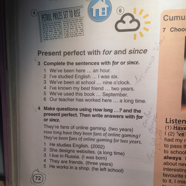 3 1 for 2 since 3 since 4 for 5 since 6 for