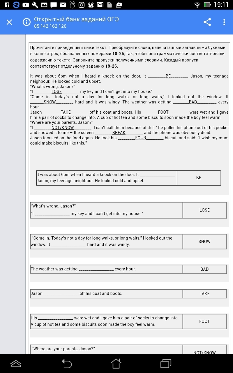 1 was 2 lost 3 snowed 4 worse 5 took 6 foots 7 don't know 8 was broken 9 four biscuits
