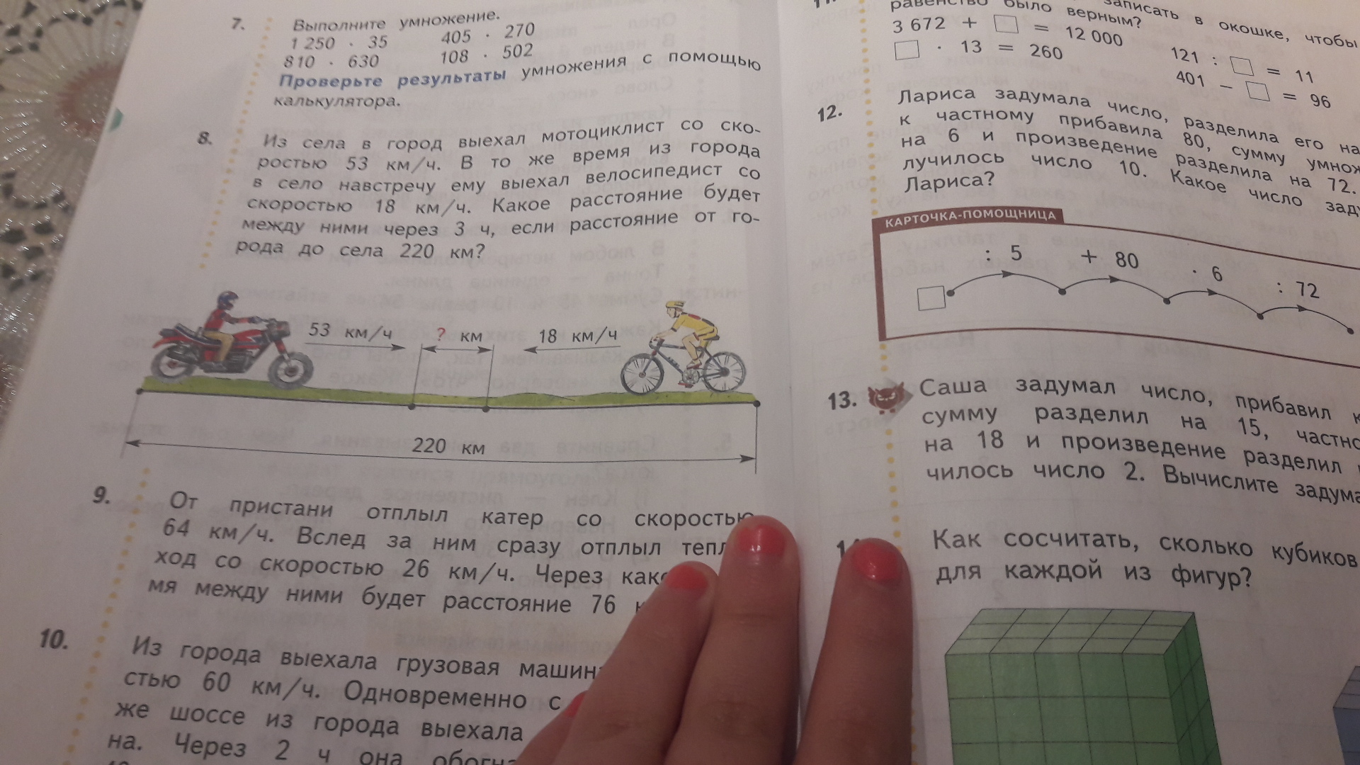 Надо сначала найти, сколько проехали оба по отдельности, затем суммируем, и из всего расстояния вычитаем результат