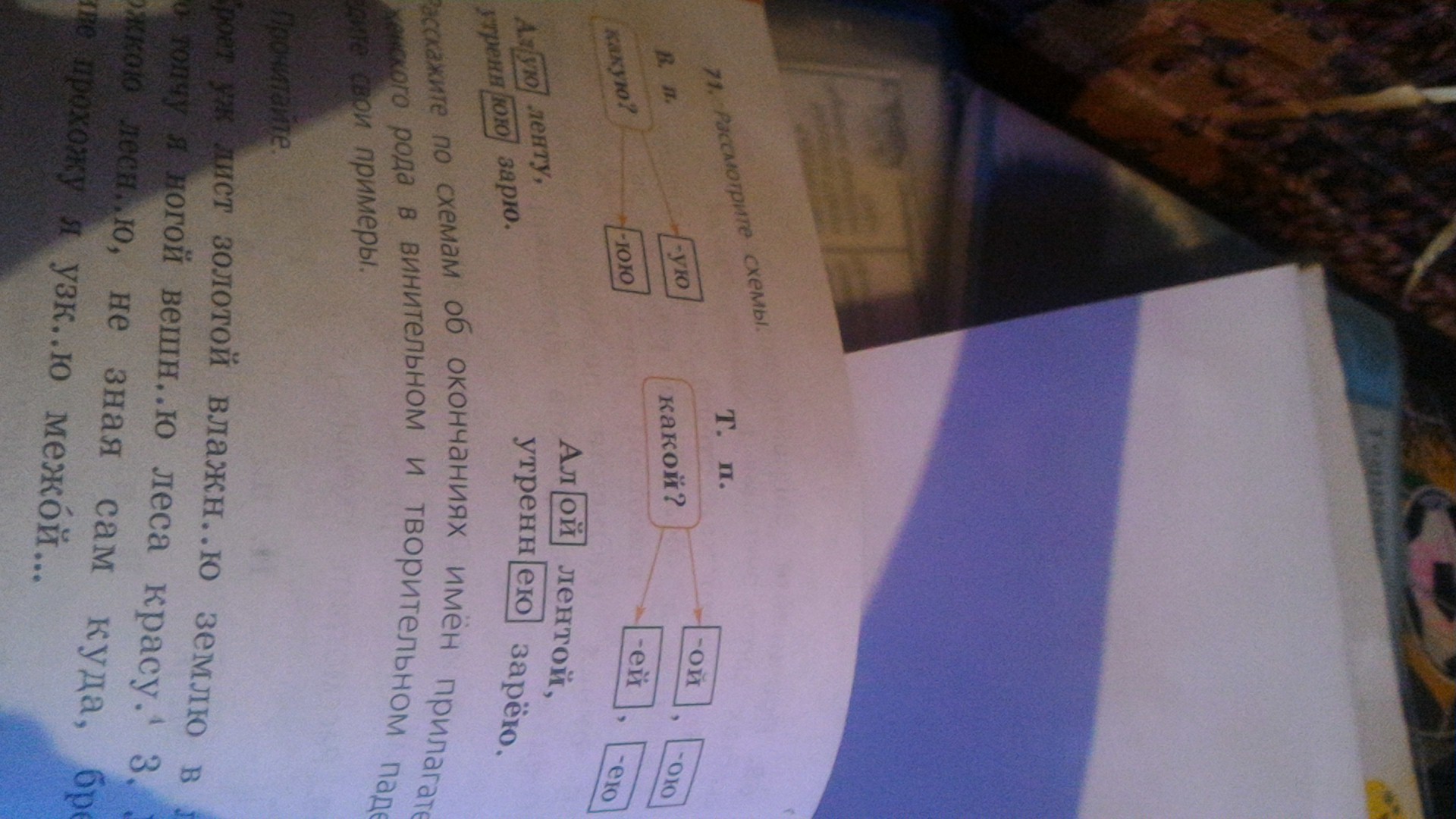 В винительном падеже прилагательные женского рода отвечают на вопрос какую и имеют окончания -ую, -юю. Например: краснУЮ рябину, белУЮ черемуху, синЮЮ чернику, вечернЮЮ смену.