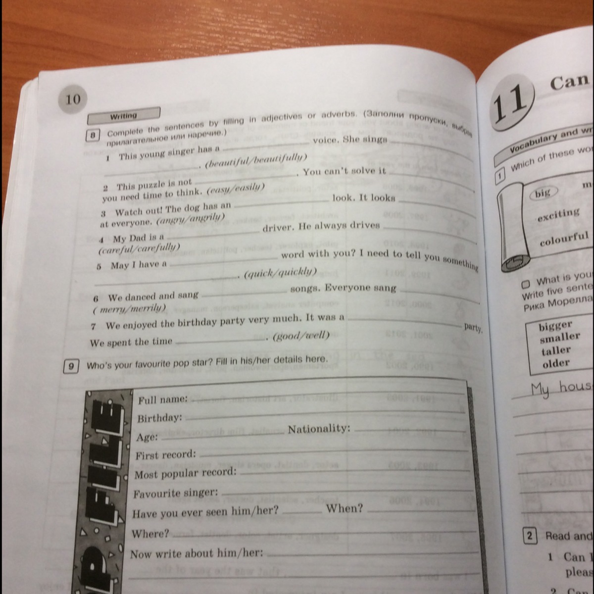 в номере 8 в первый пропуск вставляй 1 слово, во второй вставляй второе. там везде так.