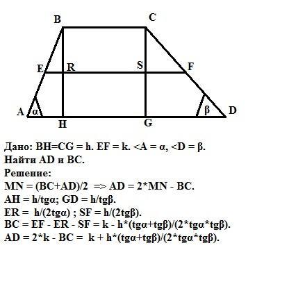Дано: ВН=CG = h. EF = k. <A = α, <D = β.