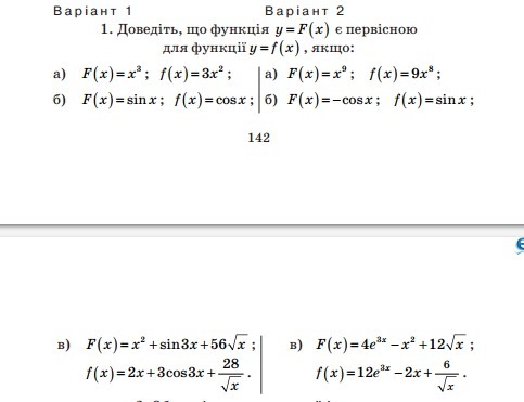 1)quad F(x)=x^3\\F'(x)=3x^2=f(x)\\2)quad F(x)=sinx\\F'(x)=cosx=f(x)\\3)quad F(x)=x^9\\f'(x)=9x^8=f(x)\\4)quad F(x)=-cosx\\F'(x)=-(-sinx)=sinx=f(x)\\5)quad F(x)=x^2+sin3x+56sqrt{x}\\f'(x)=2x+3cos3x+56cdot frac{1}{2sqrt{x}}=2x+3cos3x+frac{28}{sqrt{x}}=f(x)\\6)quad F(x)=4e^{3x}-x^2+12sqrt{x}\\F'(x)=4cdot 3e^{3x}-2x+12cdot frac{1}{2sqrt{x}}=12e^{3x}-2x+frac{6}{sqrt{x}}=f(x)