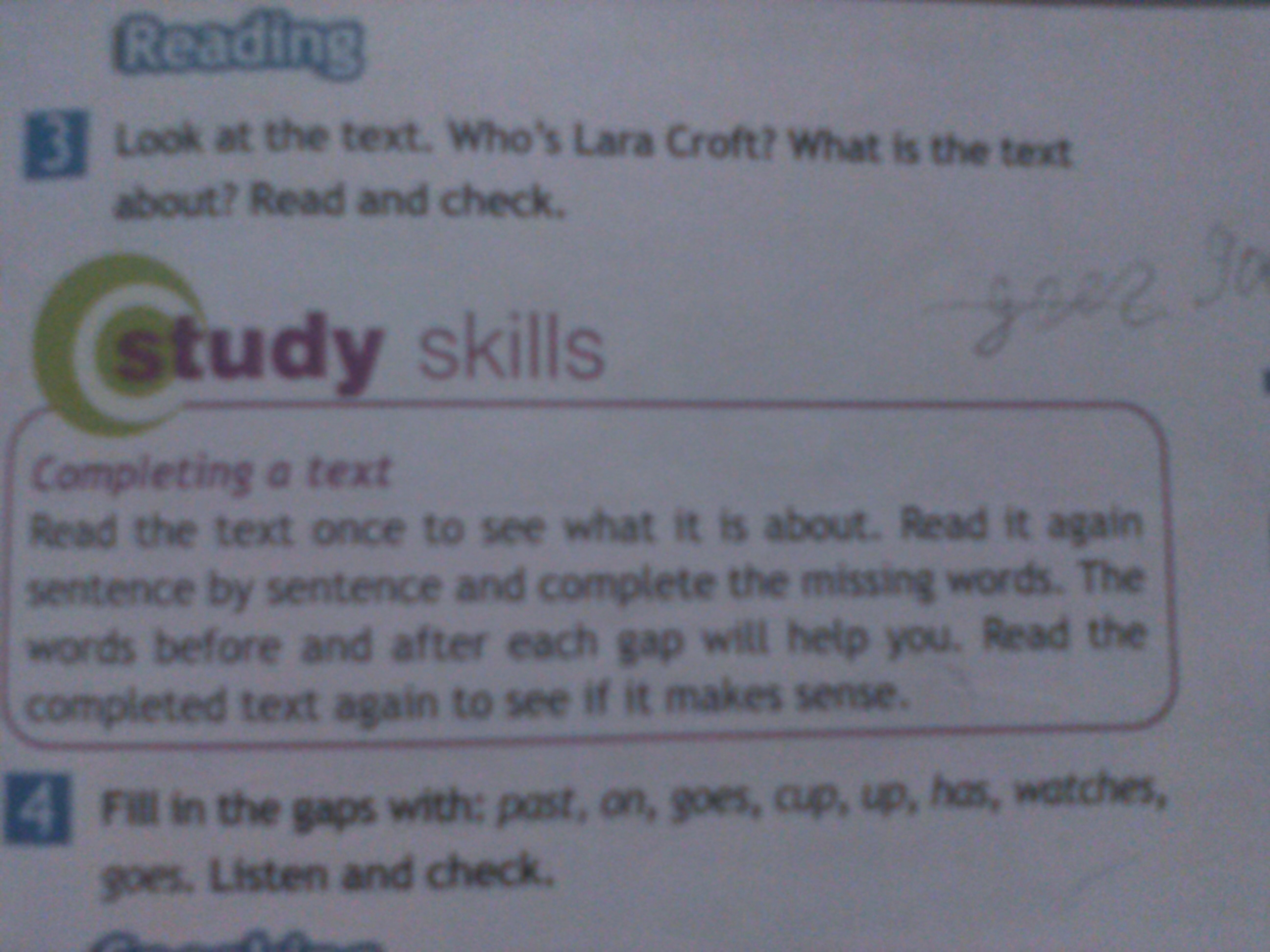 Прочитай текст один раз,чтобы посмотреть о чем он. Затем прочитай его еще раз и вставь пропущенные слова. Слова перед и после каждого пропуска тебе помогут. Прочитай дополненный текст еще раз,чтобы проверить смысл.