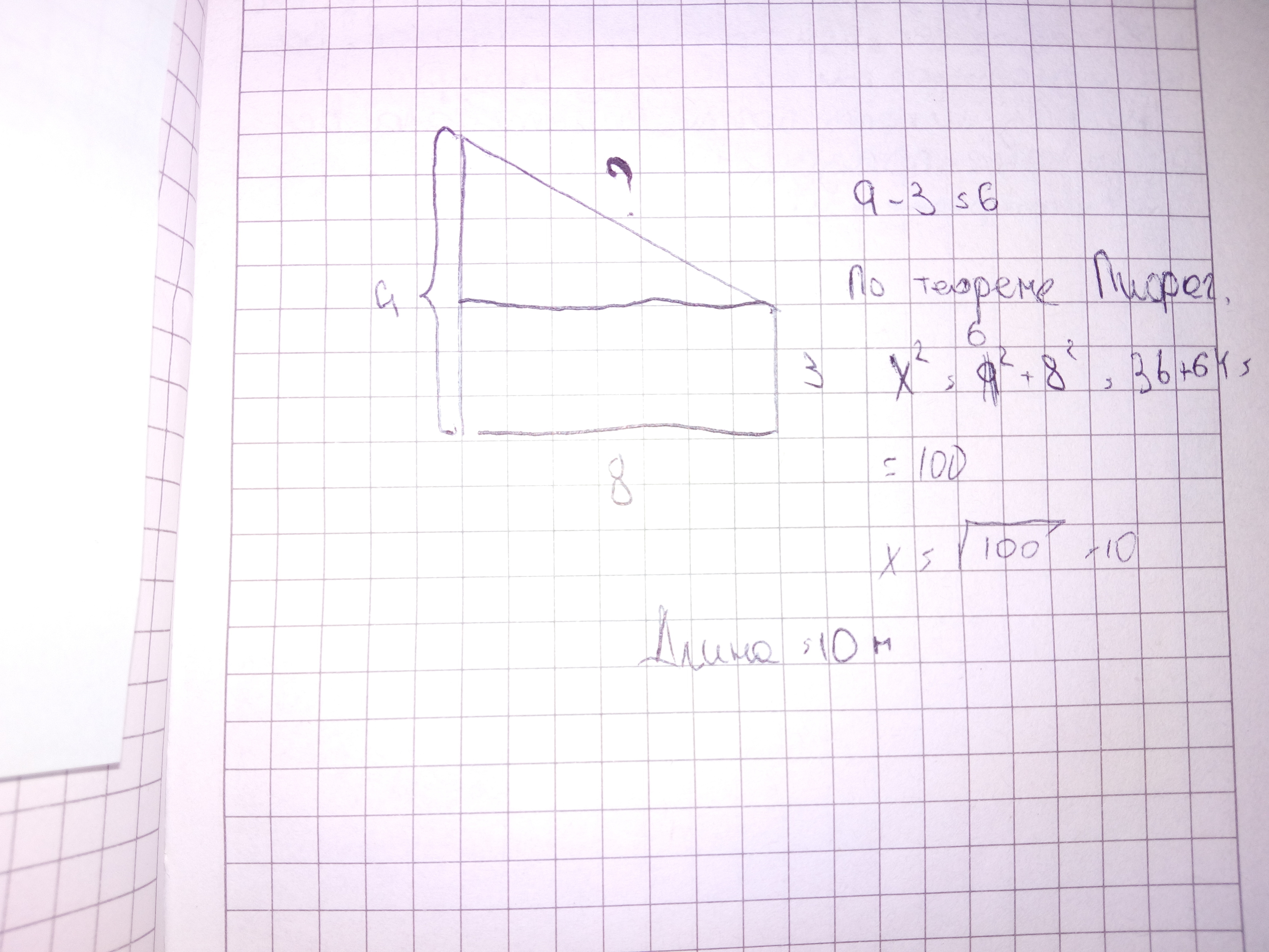 От столба высотой 9м к дому натянут провод ,который крепиться на высоте 3м от земли .Расстояние от дома до столба 8 метров.Вычислите длину провода