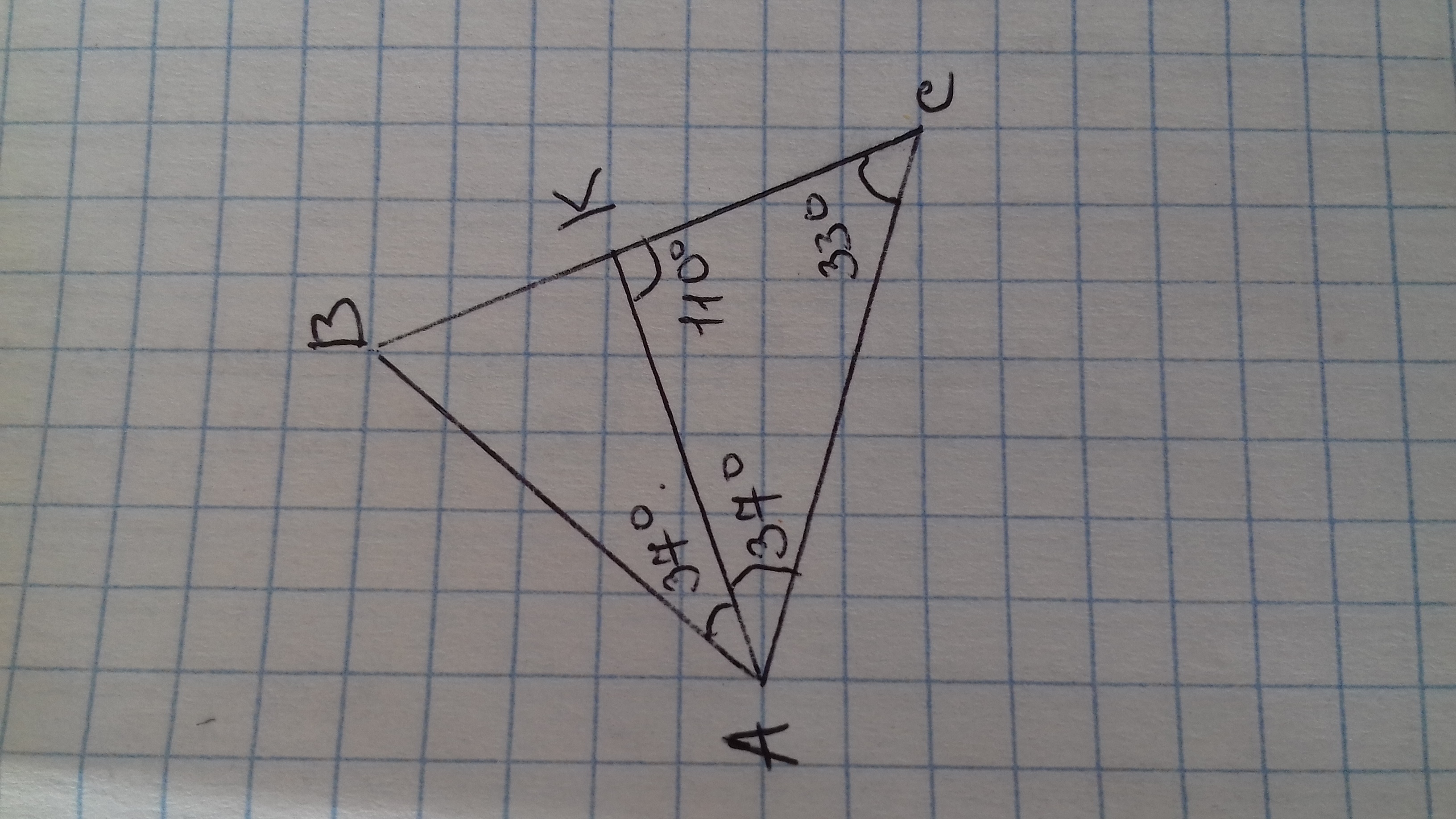 АК-биссектриса угла А треугольника АВС.угол С =33°, угол АКС=110°.Найдите градусну меру угла Начертите рисунок пожалуйста!!!