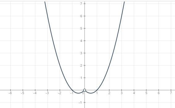 x>0 y'=2x(1-1/x)+x²(1/x²) y'=2x-2+1 y'=2x-1 y'=0 x=0.5 cимметрично при х=-0,5 точка минимума умин=0,5²(1-1/0,5) умин=-0,5² умин=-0,25