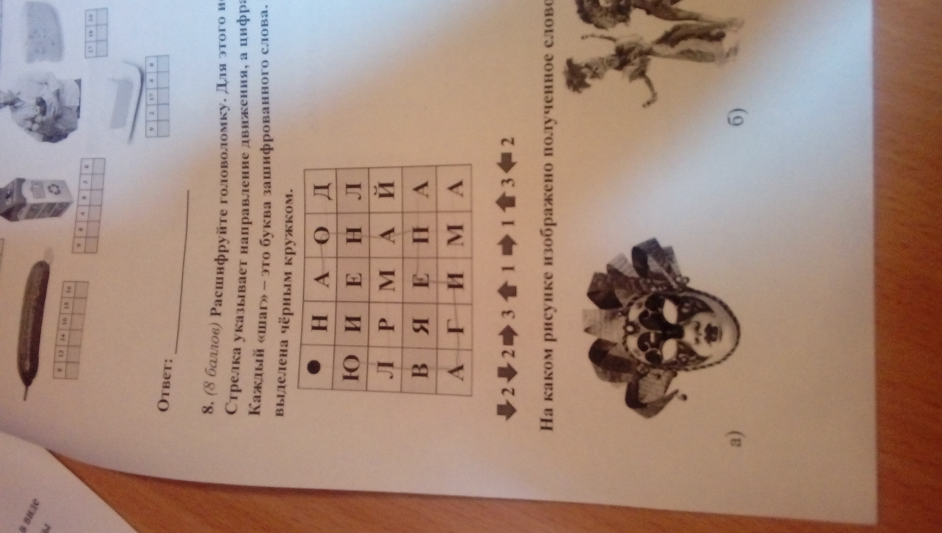 Расшифруйье головоломку. для этого используйте подсказки. стрелка указывает направление движения,а цифра- количество шагов. каждый шаг-это буква зашифрованного слова. начальная точка движения выделена черным кружком.
