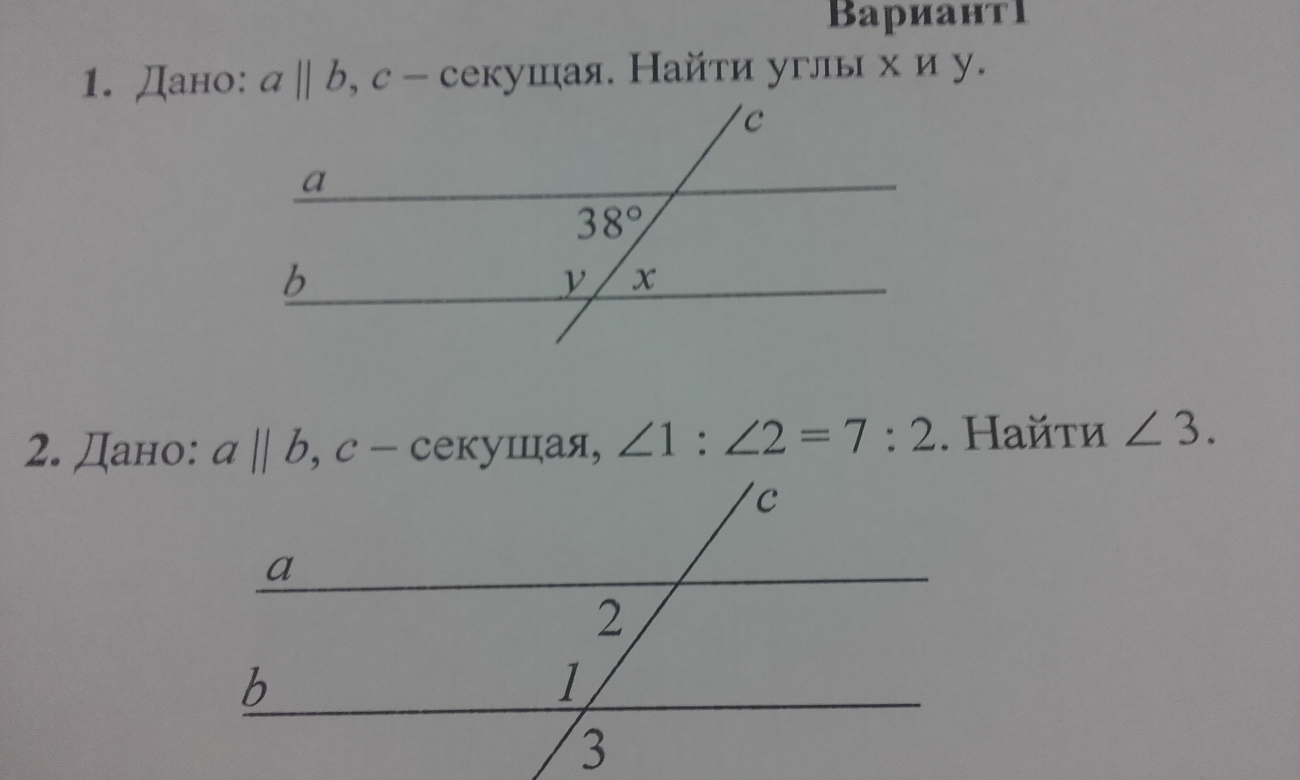 у= 180 -38=142 (односторонние)