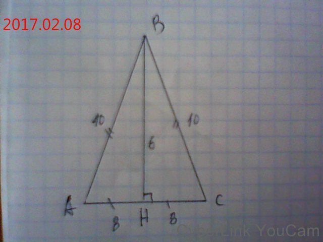 бічна сторона рівнобедреного трикутника дорівнює 10 см а висота проведена до основы доривнюе 6 см знайдить периметр трикутника