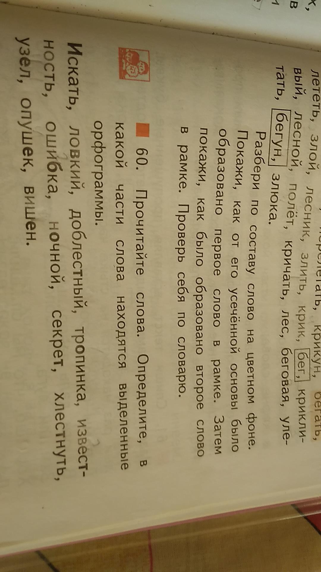 Номер 60. Прочитай слова.Определите в какой части слова находятся выделенные орфограммы.