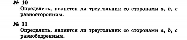 if (a=b) and (b=c) then writeln ('Треугольник равностороний')