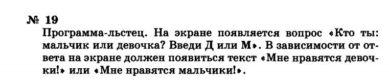 writeln ('Кто ты: Мальчик или девочка? Введи Д или М:');