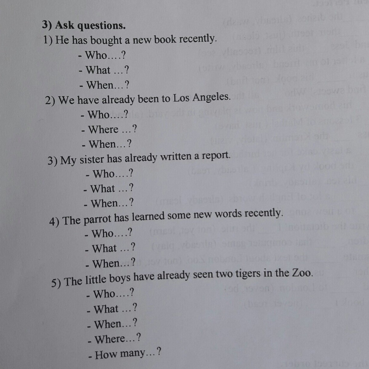 3. Who has already written a report? What has my sister already written? When has my sister written a report?