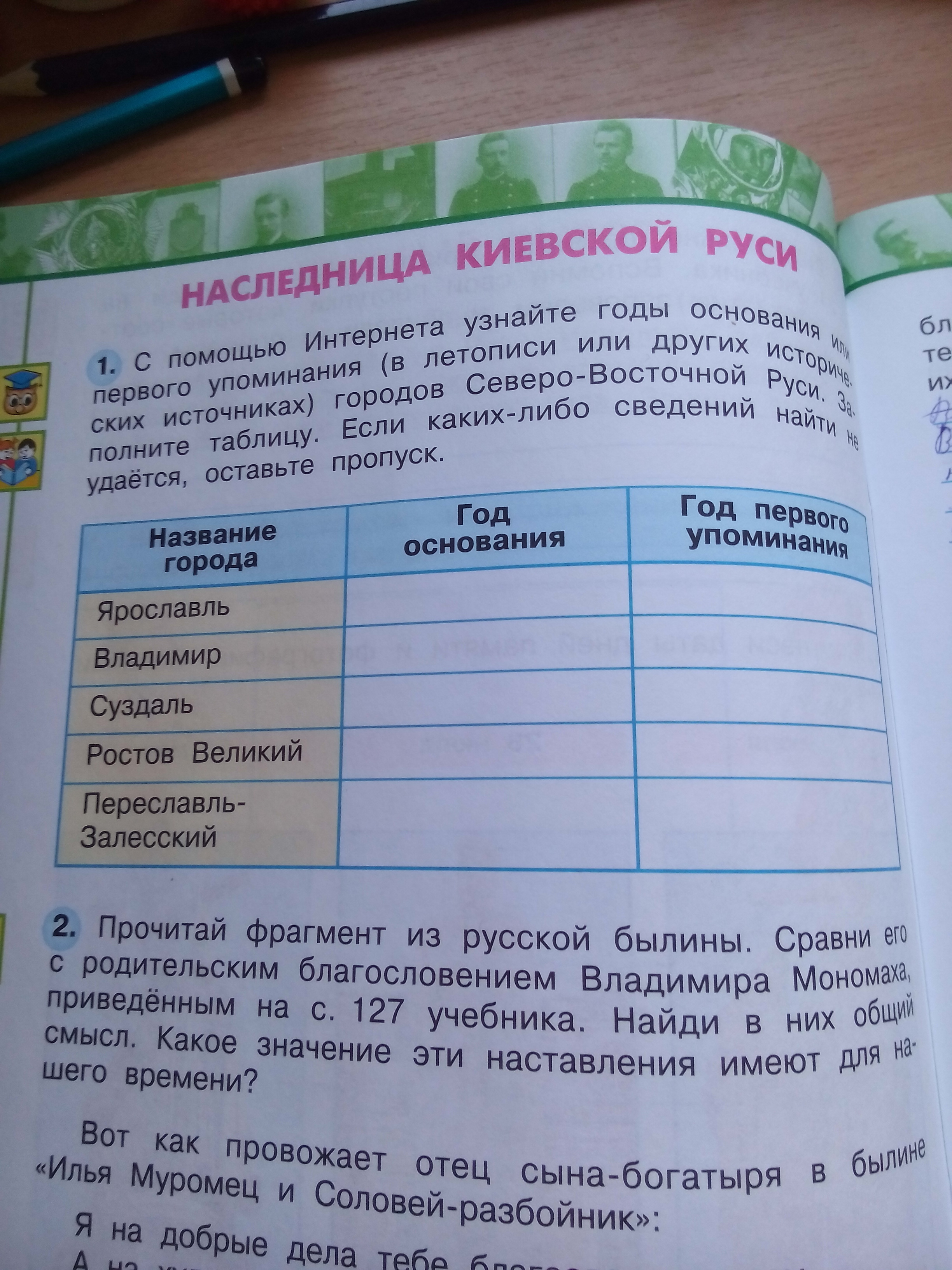 С помощью Интернета узнайте годы основания или первого упоминания (в летописи или других исторических источниках ) городов Северо-Восточной Руси.