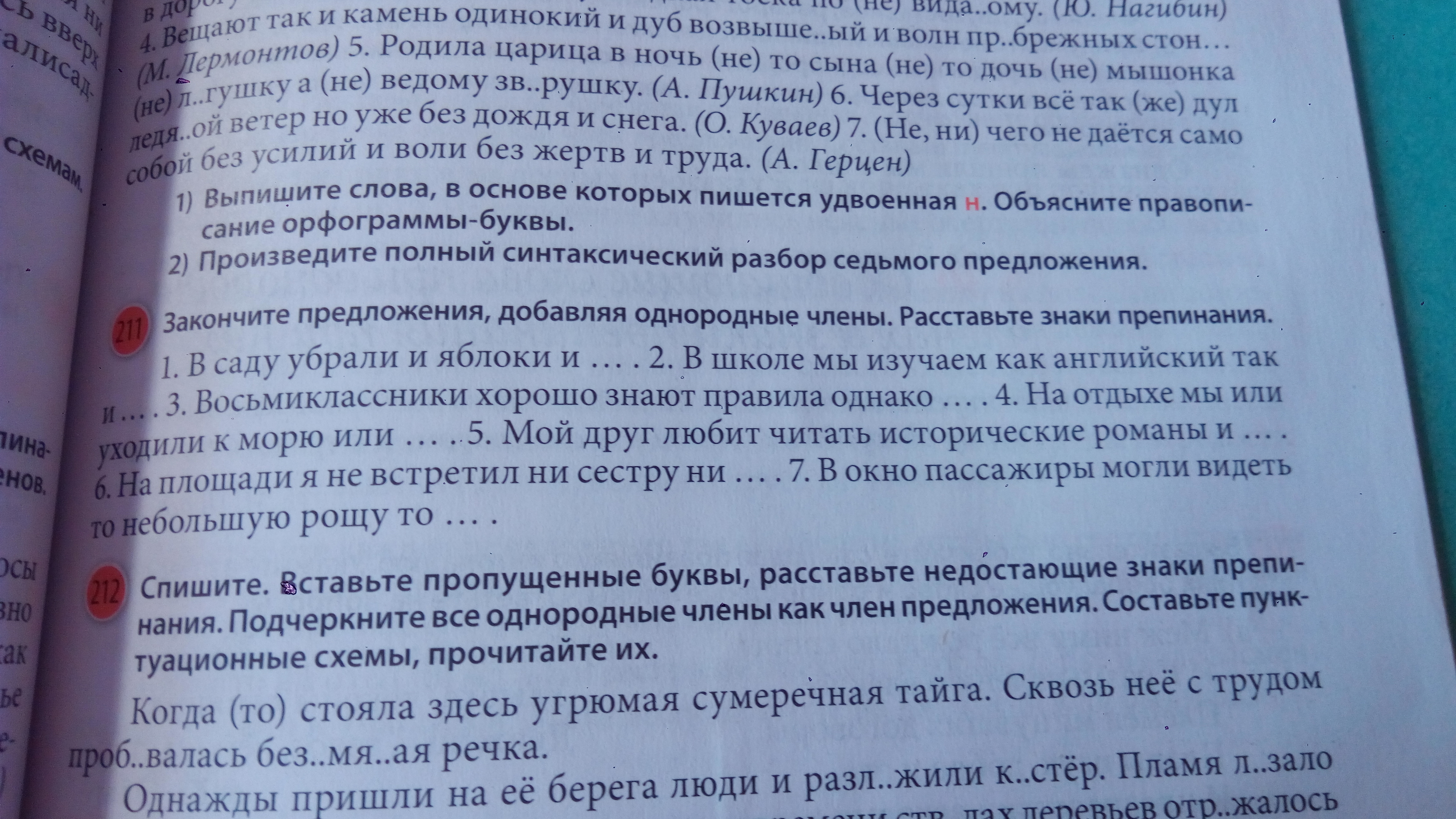 1. в саду убрали и яблоки, и груши, и вишню. 2.в школе мы изучаем как английский, так и французский. 3.восьмиклассники хорошо знают правила, однако иногда ошибаются при написании. 4. на отдыхе мы или уходили к морю, или сидели в беседке. 5.мой друг любит читать исторические романы и фантастику. 6. на площади я не встретил ни сестру, ни ее подругу. 7. в окно пассажиры могли видеть то небольшую рощу, то голую степь.