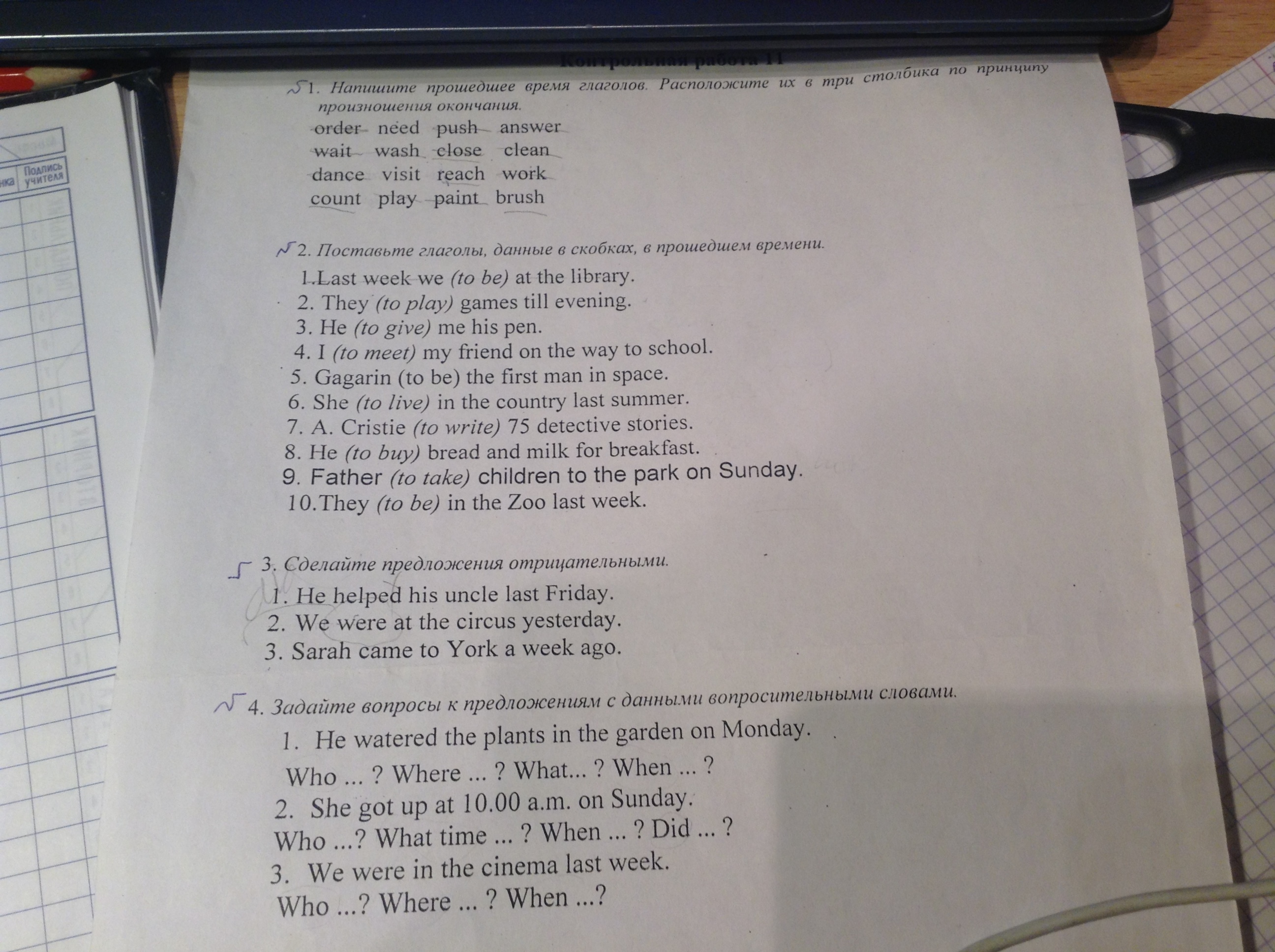 3. 1. He didn't help his uncle last Friday. 2. We weren't at the circus yesterday.