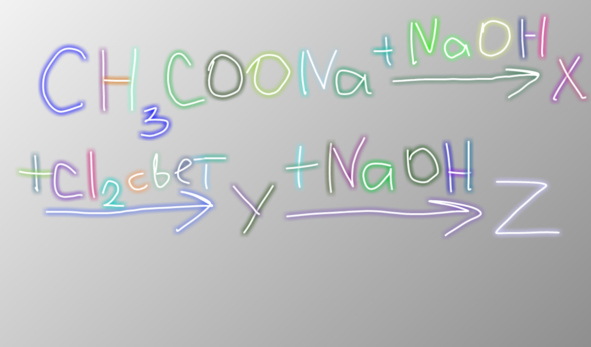 CH3COONa + NaOH(тв) ---> CH4 + Na2CO3
