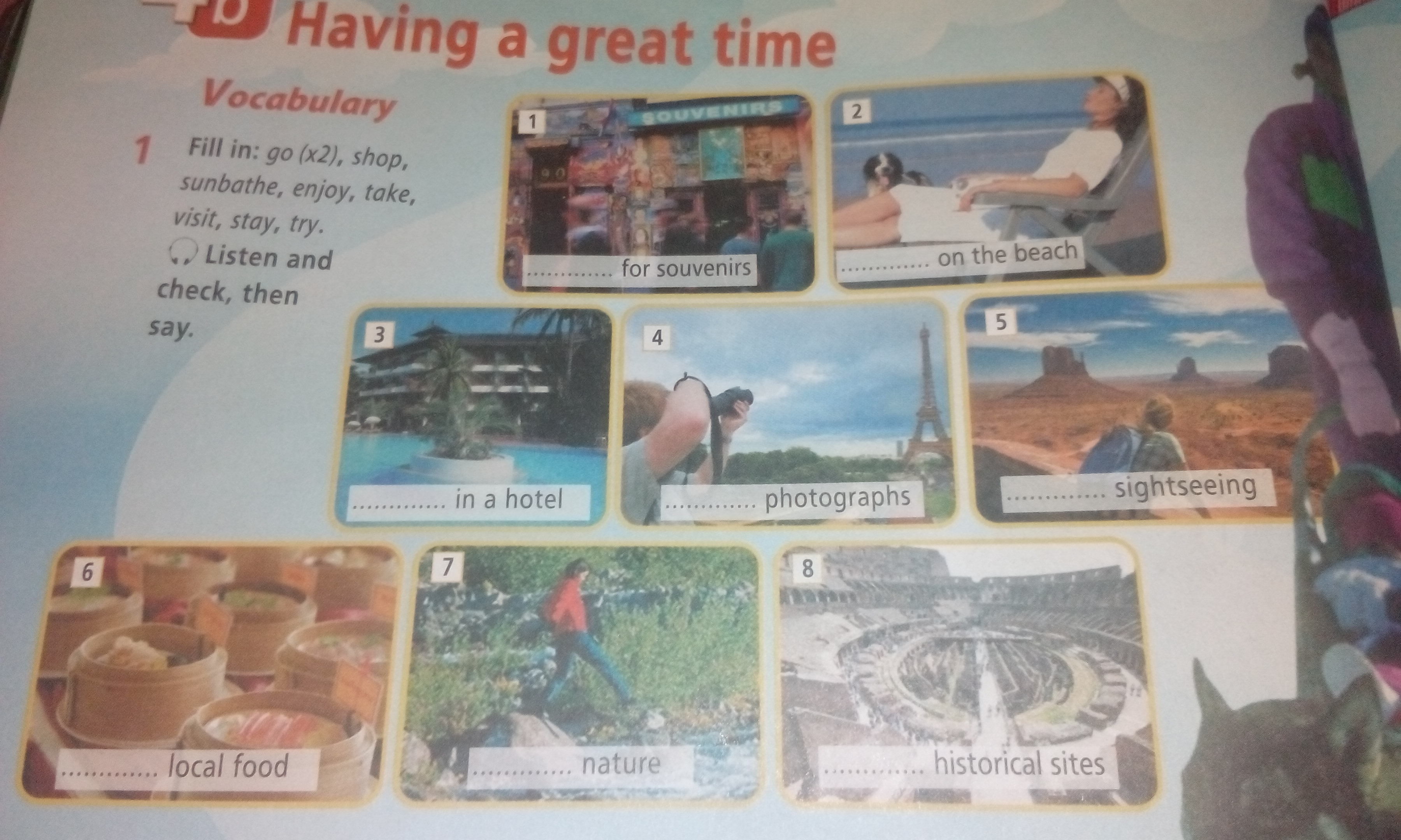 1go 2sunbathe 3stay 4take 5go 6try 7enjoy 8visit